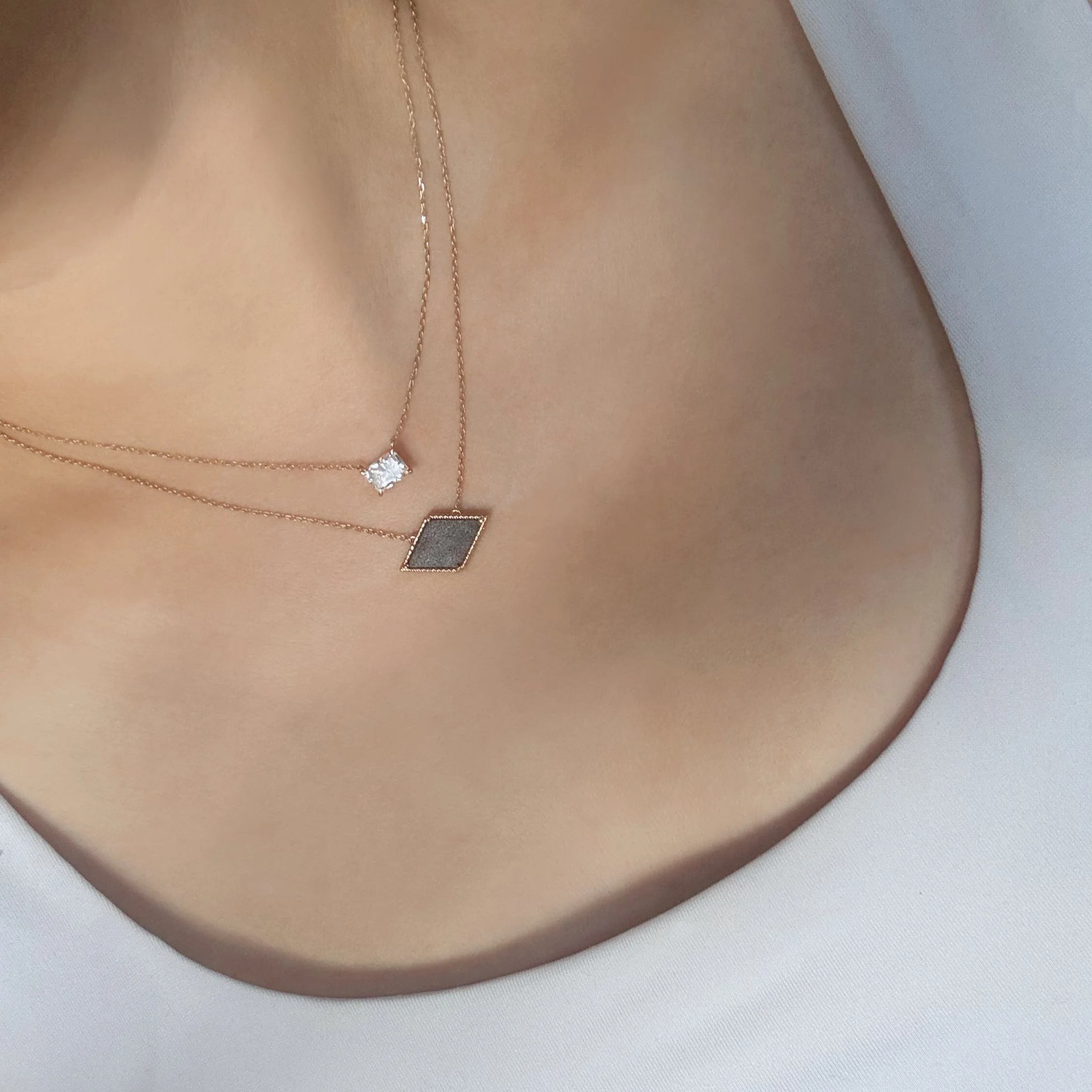 A symbol of transformation and eternity, the rhombus unites nature and art, echoing the wisdom of ancient temples and the brilliance of gemstones. Each piece in this collection is sculpted through the Fibonacci sequence, becoming more than adornment—it is a talisman of balance, protection, and light.