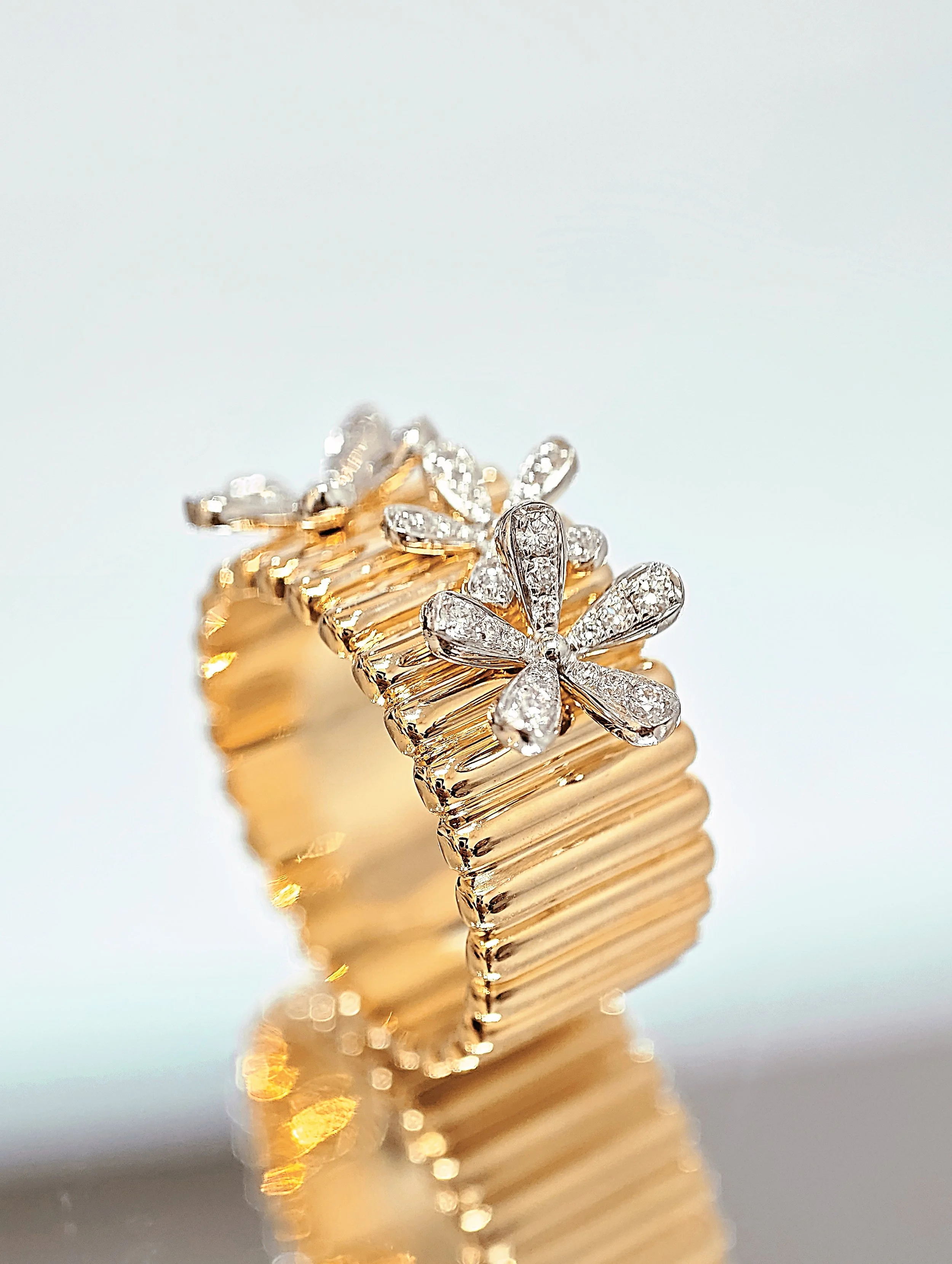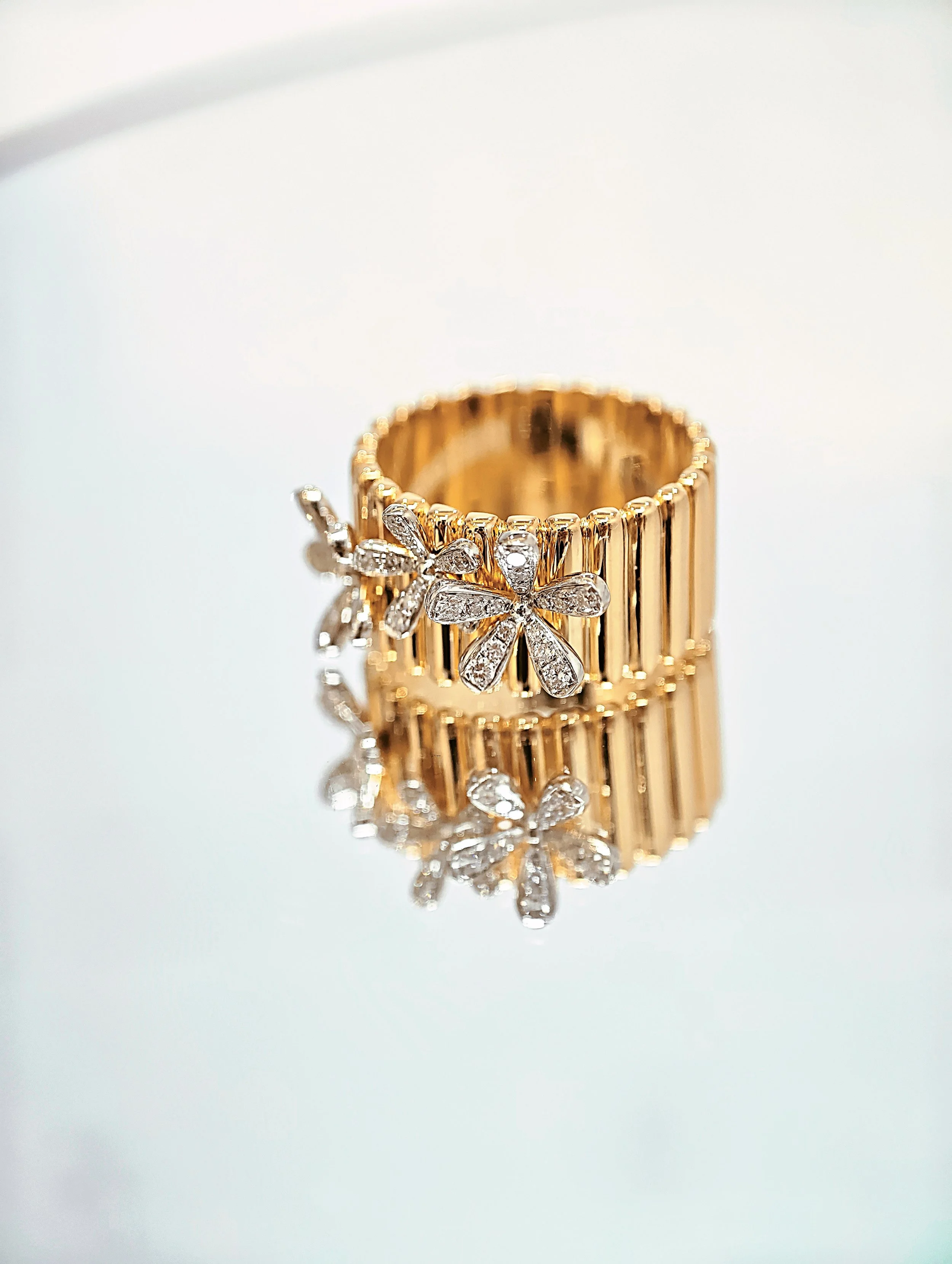 Named after an ancient Roman noble lineage, Aurelia — “the woman of gold” — embodies both heritage and radiance. Sculpted in 18K gold and illuminated with diamonds reminiscent of petals and dewdrops, each piece captures a noble romance that transcends time.